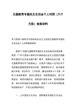 主题教育专题民主生活会领导班子个人发言提纲(含典型案例剖析及个人重大事项报告)按照本次民主生活会要求,本人在前一阶段理论学习、调查研究、推动发展、检视整改的基础上,紧密联系个人思想和工作实际,深入查摆问题、深刻剖析原因、提出整改措施、明确努力方向。现将有关情况汇报如下:一、存在的主要问题及表现(一)理论学习方面存在的问题。一是学习的主动性仍然不足。把学习作为一种责任、一种精神追求、一种生活方式的意识还不够强,主动跟进学的能动性、系统性不够,还存在零散化、碎片化、快餐化现象,还存在以干代学、被动学习,急用先学、现用现学的现象,静下心来深学细研、深度思考不够,学习形式比较单一,仅仅满足于听说读写的...