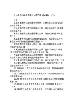 县(区)委书记理论文章汇编:上半年县(区)委书记理论文章汇编(19篇)1.加快追赶,超越步伐,推动经济社会高质量发展42.完整准确全面贯彻新发展理念奋力谱写新时代追赶超越新篇章............63.牢记“人人有事做,家家有收入”殷殷嘱托..........................................94.汲取党史智慧凝聚奋进力量.........................................................135.党建引领促发展文化赋能添活力.................................................