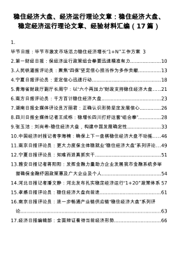 稳住经济大盘、经济运行理论文章:稳住经济大盘、稳定经济运行理论文章、经验材料汇编(17篇) (1)
