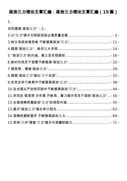 政治建设、政治监督理论文章:政治机关建设、政治建设、政治监督理论文章汇编(20篇)1.当好政治机关的政治工作者32.坚持不懈推进政治机关建设...........................................................83.以首善标准加强政治机关建设......................................................114.改作风强担当打造一流政治机关...................................................165.牢记党办职责使命打造坚强政治机关...............