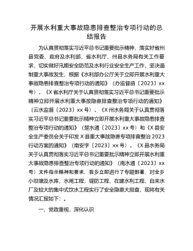 重大事故隐患排查整治专项行动总结报告:开展水利重大事故隐患排查整治专项行动的总结报告