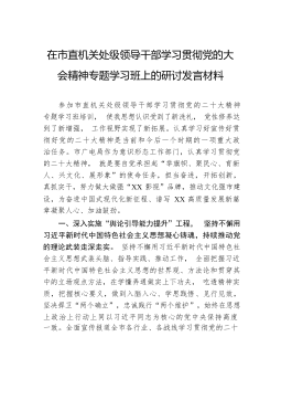 在市直机关处级领导干部学习贯彻党的大会精神专题学习班上的研讨发言材料