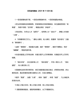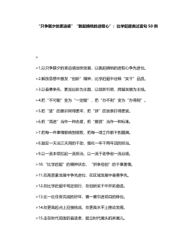 “只争朝夕的紧迫感”“跳起摘桃的进取心”:比学赶超类过渡句50例>>1.以只争朝夕的紧迫感加快发展,以跳起摘桃的进取心争先进位。>2.解放思想中激发“创新”精神,比学赶超中诠释“实干”品质。>3.以奋勇争先、更加出彩为主题,以创新引领、跨越发展为主线。>4.把“不可能”变为“一定能”,把“办不到”变为“办得到”。>5.把“进”的意识树得更牢,把“拼”的发条拧得更紧。>6.把“竞进”当作一种态度,把“提质”当作一种标准。>7.把每一件事情都做到极致,把每一项工作都干到圆满。>8.鼓足一天当三天用的干劲,强化一年干两年活的担当。>9.以一流本领扛起一流担当,以一流干劲争创一流业绩。>10.“比学赶...