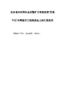 在全省水利局长会议暨扩大有效投资“百项千亿”水网提升工程推进会上的汇报发言