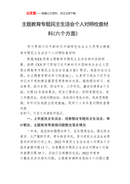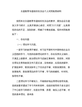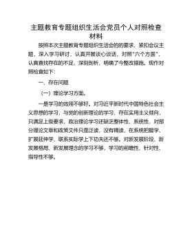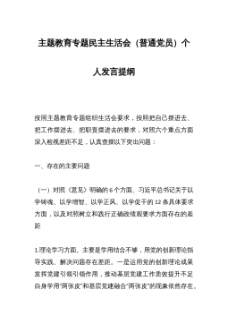 党员干部2023年主题教育专题组织生活会个人发言提纲(含案例剖析)按照*党委关于学习贯彻习近平新时代中国特色社会主义思想主题教育专题组织生活会的相关要求,我认真学习习近平总书记关于党的建设的重要思想,深入贯彻习近平总书记关于严肃党内政治生活的重要讲话指示精神,重温党章、新形势下党内政治生活的若干准则等党内法规,进一步统一思想、深化“认识,紧紧围绕理论学习、政治素质、能力本领、担当作”为、工作作风、廉洁自律等六个方面进行对照检查,剖析了问题产生的根源,明确了下步整改的方向。现将本人对照检查情况说明如下:一、2022年度组织生活会存在问题的整改情况针对上年度组织生活会自己查摆的*个方面*个问题,本...