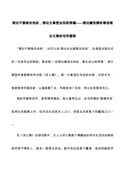 理论不都是灰色的,理论文章更应色彩斑斓——理论属性辨析兼谈理论文章的写作要领“理论不都是灰色的”,也可以说“理论未必都是灰色的”,这是我对很出名的一句话作出的辩驳。原话是“一切理论都是灰色的,唯生命之树常青”,源于德国作家歌德所作诗剧《浮士德》。第一次看到这句话的时候,对前半句,我就抱有怀疑态度;认真琢磨下去,怀疑变成了否定,所以反其意而用之。我的怀疑和否定,是有理有据的。我认真考证过,这句所谓的“歌德名言”,虽然出自歌德之手,但并非出自其本人之口,而是出自其笔下的魔鬼之口——在《浮士德》这部诗剧中,主人公浮士德是个满腹经纶却对生活状态感到迷茫和不满的人,甚至一度想去自杀。剧中的反派是个魔鬼,...