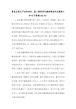 落实全面从严治党责任,深入推进党风廉政建设和反腐败斗争句子集锦(82句)