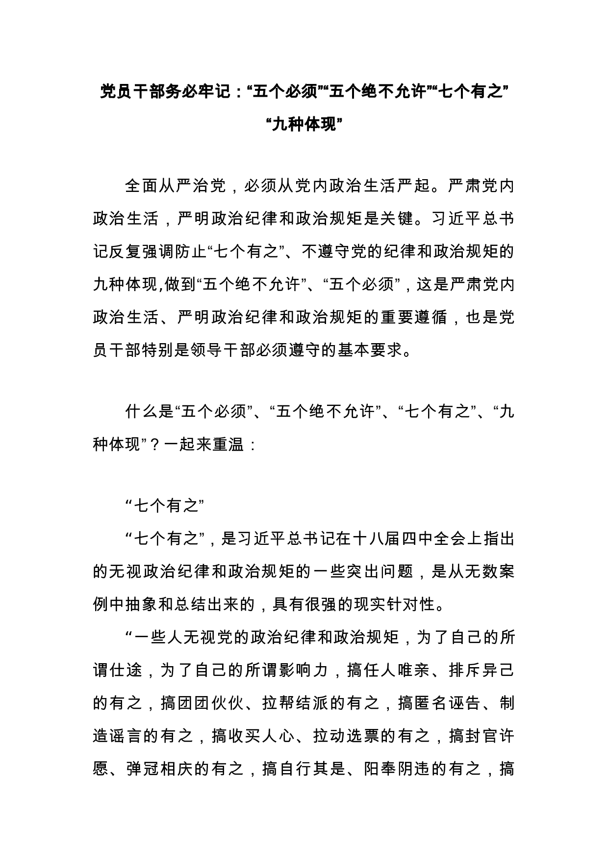 党员干部务必牢记:“五个必须”“五个绝不允许”“七个有之”“九种体现”