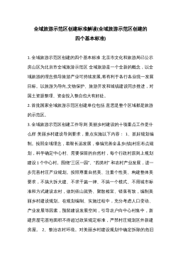 全域旅游示范区创建标准解读(全域旅游示范区创建的四个基本标准)1.全域旅游示范区创建的四个基本标准北京市文化和旅游局已公示房山区为北京市全域旅游示范区全域旅游是一个全新的概念,以全域旅游的理念指导旅游产业可持续发展,将有利于各行各业统一发展目标。以旅游为导向,文物保护、旅游开发和城镇建设同步推进,对国土资源整理、资金投入整合也大有好处。2.首批国家全域旅游示范区创建单位包括意思是整个区域都是旅游的示范区。3.全域旅游示范区创建工作导则美丽乡村建设的十项重点工作是什么样美丽乡村建设导则要求,重点实施以下内容:1、抓好规划编制。按照全域理念,着眼长远发展,修编完善全县乡(镇)村庄布点规划,科学确定...