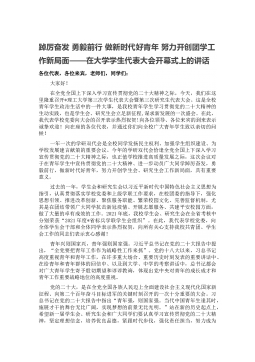 踔厉奋发勇毅前行做新时代好青年努力开创团学工作新局面——在大学学生代表大会开幕式上的讲话各位代表,各位来宾,老师们,同学们:大家好!在全党全国上下深入学习宣传贯彻党的二十大精神之际,今天,我们在这里隆重召开*理工大学第三次学生代表大会暨第三次研究生代表大会。这是全校青年学生政治生活中的一件大事,是我校青年学生学习贯彻党的二十大精神的生动实践,也是学生会、研究生会立足新征程,谋求新发展的一次盛会。在此,我代表学校党委向大会的召开表示热烈祝贺!向各位领导、各位来宾的到来表示诚挚欢迎!向在座的各位代表,并通过你们向全校广大青年学生致以亲切的问候!一年一次的学研双代会是全校同学发扬民主权利、加强学生组...