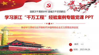 学习浙江“千万工程”经验案例专题党课PPT宣讲:××时间:2023.06.28推动学习贯彻习近平新时代中国特色社会主义思想走深走实造就万千美丽乡村造福万千农民群众“千村示范、万村整治”工程(以下简称“千万工程”)是习近平总书记在浙江工作时亲自谋划、亲自部署、亲自推动的一项重大决策,全面实施20年来深刻改变了浙江农村的面貌。为深入贯彻落实习近平总书记关于浙江“千村示范、万村整治”工程(以下简称“千万工程”)的重要指示批示精神,进一步学深学透、用好用活“千万工程”经验,扎实推进农村人居环境整治提升五年行动,建设宜居宜业和美乡村,全面推进乡村振兴,开展此次党课学习。前言01关于深入学习浙江“千万工程...
