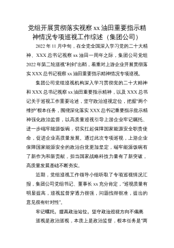 加强企业党内巡察监督实践思考巡视和巡察一字之差,既有相同之处,也因主体、对象等因素的不同,存在一定的差异性。巡视更侧重于面上的"视",巡察更侧重于具体问题的"察",需要我们在实践中不断总结摸索,完善提高。为此,公司党委认真借鉴巡视工作的经验和做法,探索实践,以发现问题、形成震慑为目标,推动全面从严治党在基层落地生根。一、主要做法和经验(一)抓实“三个关键”,扛牢巡察工作主体责任。1.统筹谋划把好"方向盘"。党委始终着眼于围绕中心、服务大局开展巡察工作,聚焦"四个落实"要求,准确把握全面从严治党阶段性特征,建立"党委统一领导、纪委协调推进、巡察办统筹协调、基层党委主动配合,对基层党委、党支部巡察...