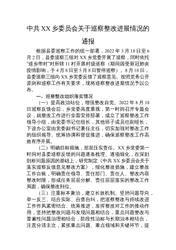 中共XX经济开发区工作委员会关于巡察整改进展情况的通报(20230504)