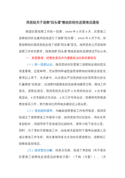 支部委员会关于县委巡察组巡察反馈意见整改阶段进展情况的通报(局机关)根据县委统一部署,XXXX年XX月X日至XXXX年XX月XX日,县委第一巡察组对县XX党支部开展了巡察。XXXX年X月,县委第一巡察组向县XX党支部反馈了巡察意见。按照党务公开原则和巡察工作有关要求,现将巡察整改情况予以公布。一、落实巡察整改主体责任情况强化组织领导。成立了以支部书记任组长、县红十字会常务副会长任副组长、各股室相关负责人任成员的巡察整改工作领导小组,统一领导整改工作。领导小组办公室设在县XX综合股,负责推进整改工作落实、归集资料及撰写材料。X月X日,召开专题组织生活会,支委及成员、党员领导干部紧扣专题组织生活会...
