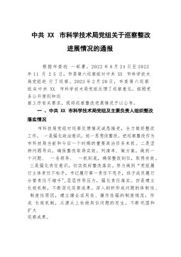 中共XX市住房和城乡建设局党组关于巡察整改进展情况的通报(20230803)