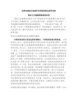 发挥巡视综合监督作用和联系群众纽带功能 推动卫生健康领域系统治理