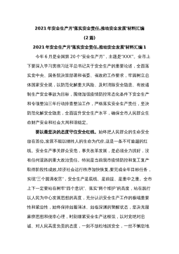 (2篇)2021年安全生产月“落实安全责任,推动安全发展”材料汇编