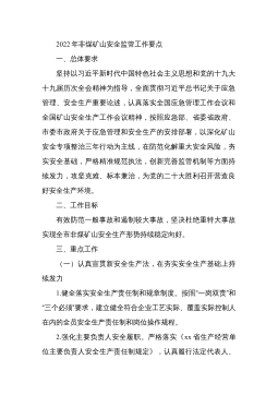 市非煤矿山(含尾矿库)安全生产专门委员会2022年工作要点2022年是党的二十大召开之年,也是国家矿山安全监察机构改革后全面履职的第一年,也是专项整治三年行动的收官之年,做好非煤矿山安全生产工作意义重大。总体要求是:以习近平新时代中国特色社会主义思想为指导,贯彻落实党的十九大和十九届历次全会精神及中央经济工作会议精神,坚持“两个至上”,坚持稳中求进,坚持统筹发展和安全,以巩固深化专项整治三年行动为主线,以坚决防范遏制各类安全生产事故为目标,以南陵县作为全省非煤矿山重点县为契机,着力防范化解重大安全风险,着力夯实安全基础,着力严格精准规范执法,从思想上、作风上、能力上、制度上找差距、找问题、找不...