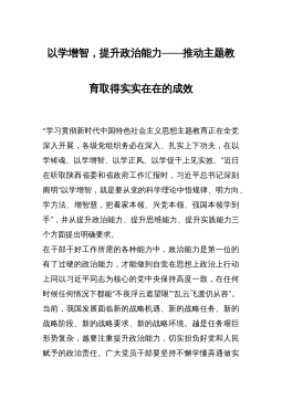 主题教育“以学铸魂、以学增智、以学正风、以学促干”中心组学习材料习近平新时代中国特色社会主义思想是当代中国马克思主义、二十一世纪马克思主义,是指导推动新时代伟大实践的强大思想武器,是引领中华民族伟大复兴新征程的光辉旗帜。学习贯彻习近平新时代中国特色社会主义思想主题教育开展以来,习近平总书记在四次地方考察调研中,分别对主题教育根本任务中的“以学铸魂、以学增智、以学正风、以学促干"作出深刻阐释、提出明确要求,鲜明回答了学什么、怎么学等方向性、原则性问题,为纵深推进主题教育、坚定自觉强化理论武装提供了根本遵循。政法机关是党和人民的“刀把子”,必须按照“走前列、当先锋、作示范”的要求,认真学习、全面领...