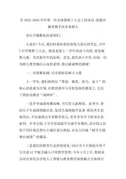 在2025-2026学年第一次全体教职工大会上的讲话致敬贡献者携手向未来树人