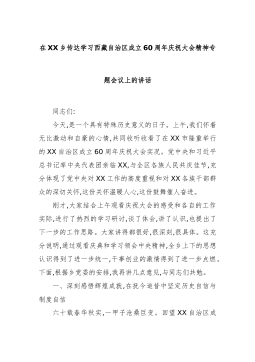 在XX乡传达学习西藏自治区成立60周年庆祝大会精神专题会议上的讲话
