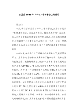 在县委2025年下半年工作部署会上的讲话同志们:今天,我们召开县委下半年工作部署会,主要任务是以“积极履职担当、全面压实责任、锚定发展方向”为主题,深入分析当前我县发展面临的形势与挑战,系统梳理问题清单,研究部署下半年重点工作,动员全县上下进一步统一思想、凝聚共识,以决战决胜的姿态,奋力开创*县高质量发展的新局面。今年以来,在全县广大干部群众的共同努力下,我们顶住压力、克难奋进,经济社会发展保持了稳中有进、稳中向好的良好态势。根据统计数据,2025年上半年,全县实现地区生产总值(GDP)131.76亿元,同比增长6.4%,增速位居全市前列。其中,第一产业增加值同比增长4.0%,第二产业增长5.4%,第三产业增长7.7%。尤为可喜的是,服务业的快速增长,表明我县的产业结构调整初见成效,发展新动...