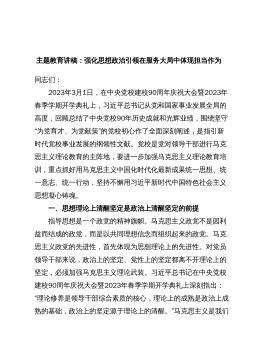 扎实抓好主题教育为奋进新征程凝心聚力——习近平4月3日,学习贯彻习近平新时代中国特色社会主义思想主题教育工作会议在北京召开。中共中央总书记、国家主席中央军委主席习近平出席会议并发表重要讲话。 ■强国建设、民族复兴的宏伟目标令人鼓舞、催人奋进,我们这一代共产党人使命光荣、责任重大。我们要以这次主题教育为契机,加强党的创新理论武装,不断提高全党马克思主义水平,不断提高党的执政能力和领导水平,为奋进新征程凝心聚力,踔厉奋发、勇毅前行,为全面建设社会主义现代化国家、全面推进中华民族伟大复兴而团结奋斗■以县处级以上领导干部为重点在全党深入开展学习贯彻新时代中国特色社会主义思想主题教育,是贯彻落实党的二...