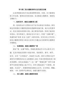 学习第二批主题教育研讨会交流发言稿网信部门作为党委部门、政治机关,更要在思想上高度重视,行动上狠抓落实,围绕主题教育突出“三学三进三争”,全面做好主题教育的相关工作。一、突出“三学”,做到入脑入心入行在理论学习方面,突出“三学”,即带着嘱托学、带着感情学、带着责任学,做到入脑、入心、入行。带着嘱托学,坚决贯彻习近平总书记对福建、厦门工作的重要讲话重要指示精神。带着感情学,用心感悟习近平新时代中国特色社会主义思想蕴含的使命情怀。带着责任学,严格遵守纪律和规矩,力戒形式主义、官僚主义、享乐主义和奢靡之风。二、围绕“三进”,做到身到心到行到在调查研究方面,围绕“三进”,即进企业、进高校、进社区,做到...