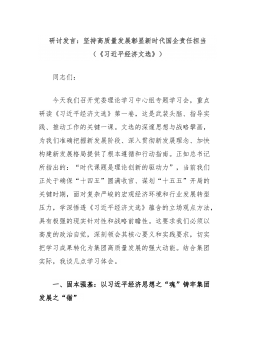 研讨发言:坚持高质量发展彰显新时代国企责任担当(《习近平经济文选》)