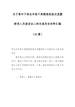 (10篇)关于青年干部在年轻干部锻炼经验交流暨新进人员座谈会上的交流发言材料汇编