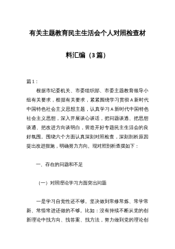 XX集团公司班子主题教育民主生活会对照检查材料(2篇)篇1:班子2023年主题教育专题民主生活会对照检查剖析(集团公司)根据按照市委组织部关于开好主题教育党员领导干部专题民主生活会的通知要求,我代表xx班子作对照检查如下:一、对照六个方面存在的问题(一)理论学习方面一是理论学习质量不够高。能常态化落实"第一议题"制度,但多数时候满足于“已学习”或“已传达”的形式上完成“规定动作”,对A新时代中国特色社会主义思想的科学性、系统性、战略性研究得不够深入透彻。特别是过去一年业务工作千头万绪,班子每个人肩上的责任都很重、任务也更多,自觉用于钻研学习的时间相对较少。二是学用结合不够扎实。学习多是围绕重点...