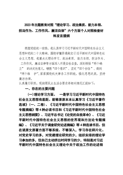 2023年主题教育对照“理论学习、政治素质、能力本领、担当作为、工作作风、廉洁自律”六个方面个人对照检查材料发言提纲16篇精编版