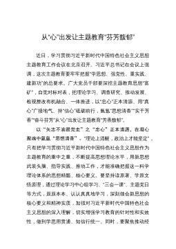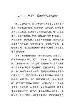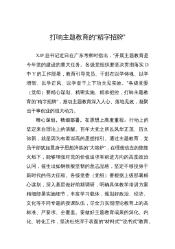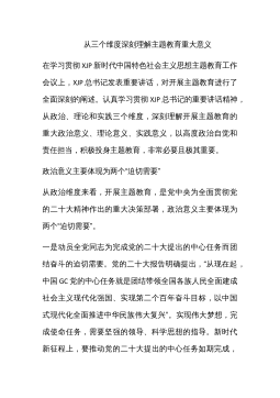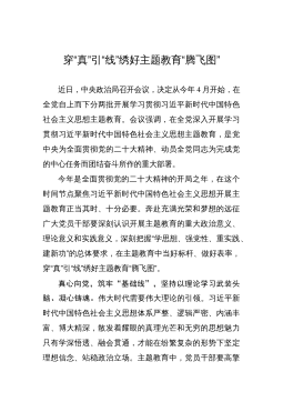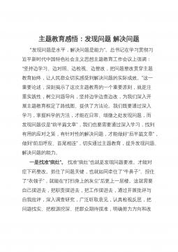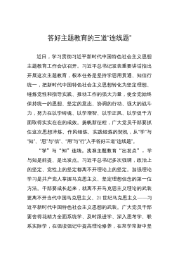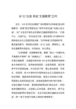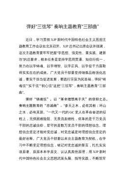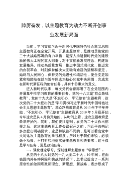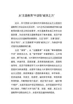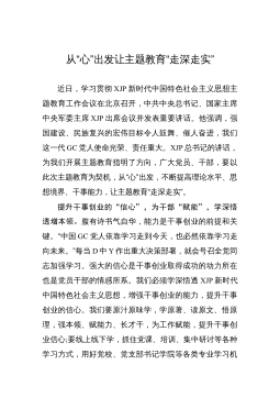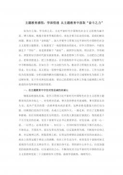 主题教育感悟:学深悟透从主题教育中汲取“奋斗之力”知为行之始,学为用之先。习近平新时代中国特色社会主义思想内涵丰富、博大精深,既蕴含着世界观的指引,也包含着方法论的启迪,是我们解决问题、推动工作的“金钥匙”。深入开展学习贯彻习近平新时代中国特色社会主义思想主题教育,让我接受了一场思想政治的洗礼。在学习贯彻中,不能仅满足于“学好”,而是要着眼于“做好”,做到学以致用、用以促学、学用相长。要紧密结合新时代新实践新要求,联系思想和工作实际,主动把自己摆进去、把职责摆进去、把工作摆进去,在学思践悟中牢记初心使命,在细照笃行中不断修炼自我,在知行合一中主动担当作为,推动学习贯彻往实里走、往深里走、往心里...