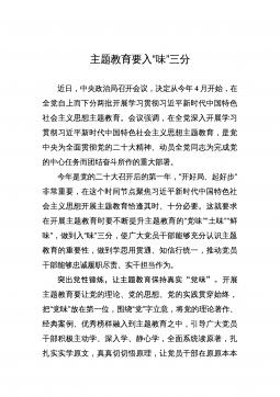 学深悟透实干笃行务求实效——各地认真推动学习贯彻XJP新时代中国特色社会主义思想主题教育走深走实学习贯彻XJP新时代中国特色社会主义思想主题教育工作会议召开以来,各地认真贯彻落实党中央关于主题教育的各项部署,以高度的政治责任感和使命感,以学深悟透、实干笃行的精神,坚持问题导向、聚焦目标任务,推动主题教育扎实有效开展。作为革命老区,陕西坚持把加强理论武装作为主题教育的重中之重,举办学习贯彻XJP新时代中国特色社会主义思想主题教育读书班,研究制定全省主题教育实施方案引导党员干部真正做到以学铸魂、以学增智、以学正风、以学促干。相关部门把开展主题教育与改善营商环境、改进干部作风、提升工作能力,与发展县...