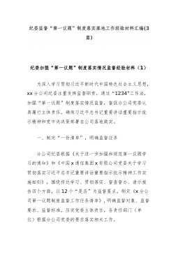(3篇)纪委监督“第一议题”制度落实落地工作经验材料汇编