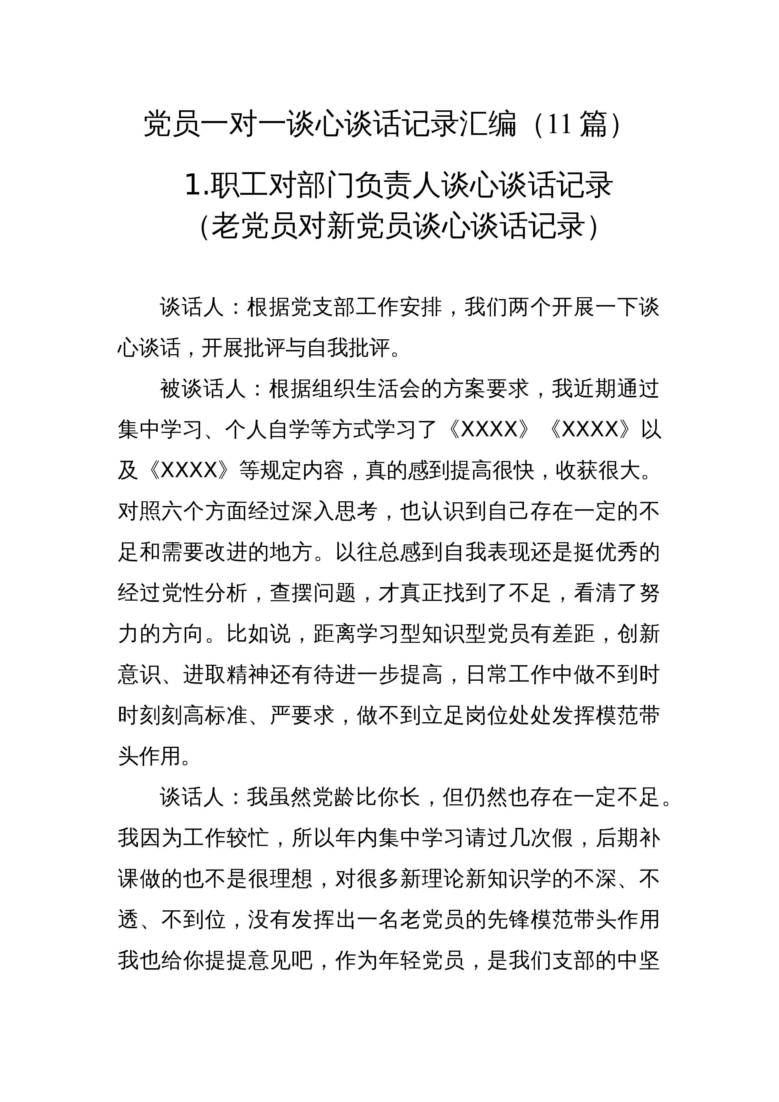 党员谈心谈话记录汇编材料(11篇)