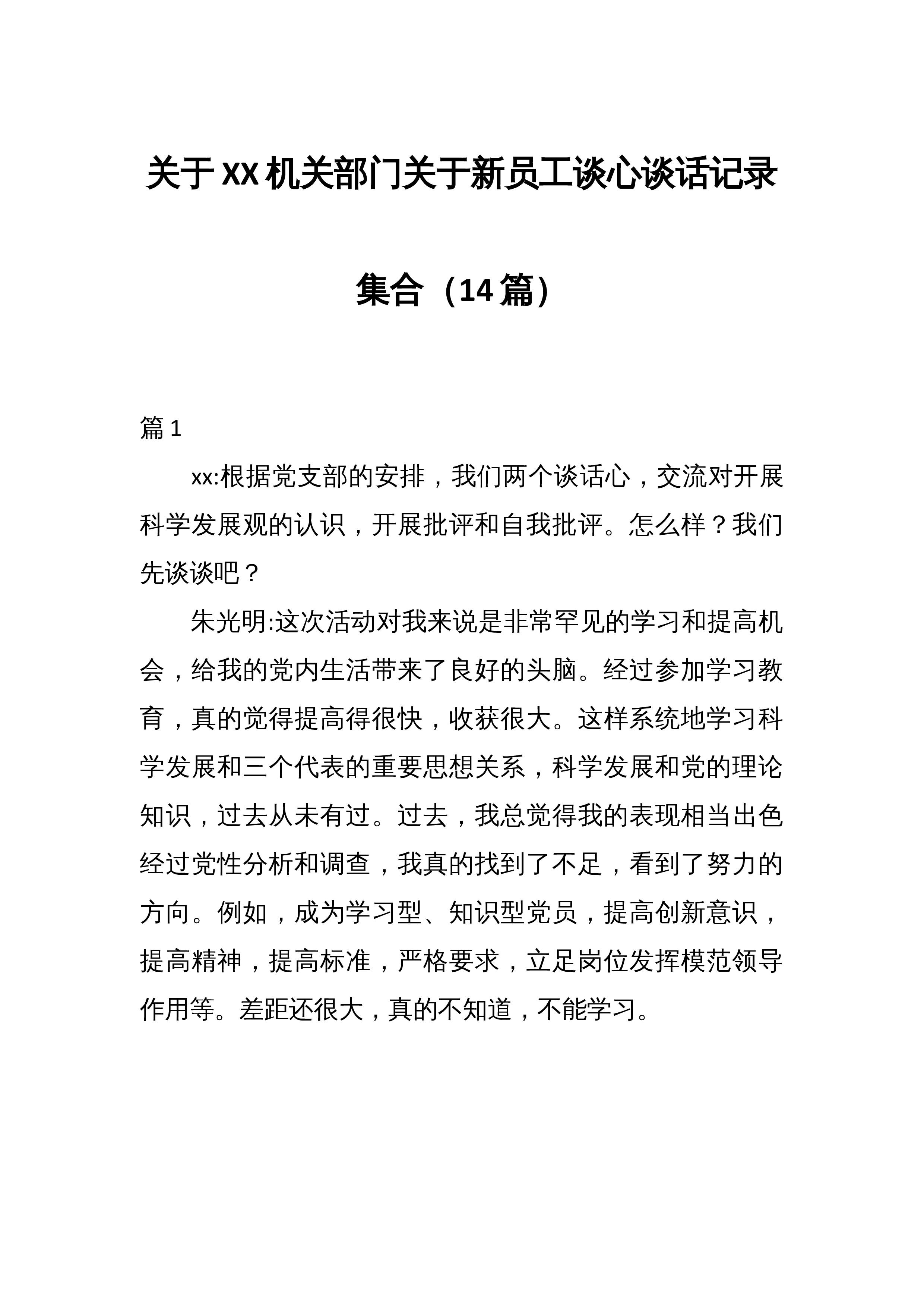 (14篇)关于XX机关部门关于新员工谈心谈话记录集合