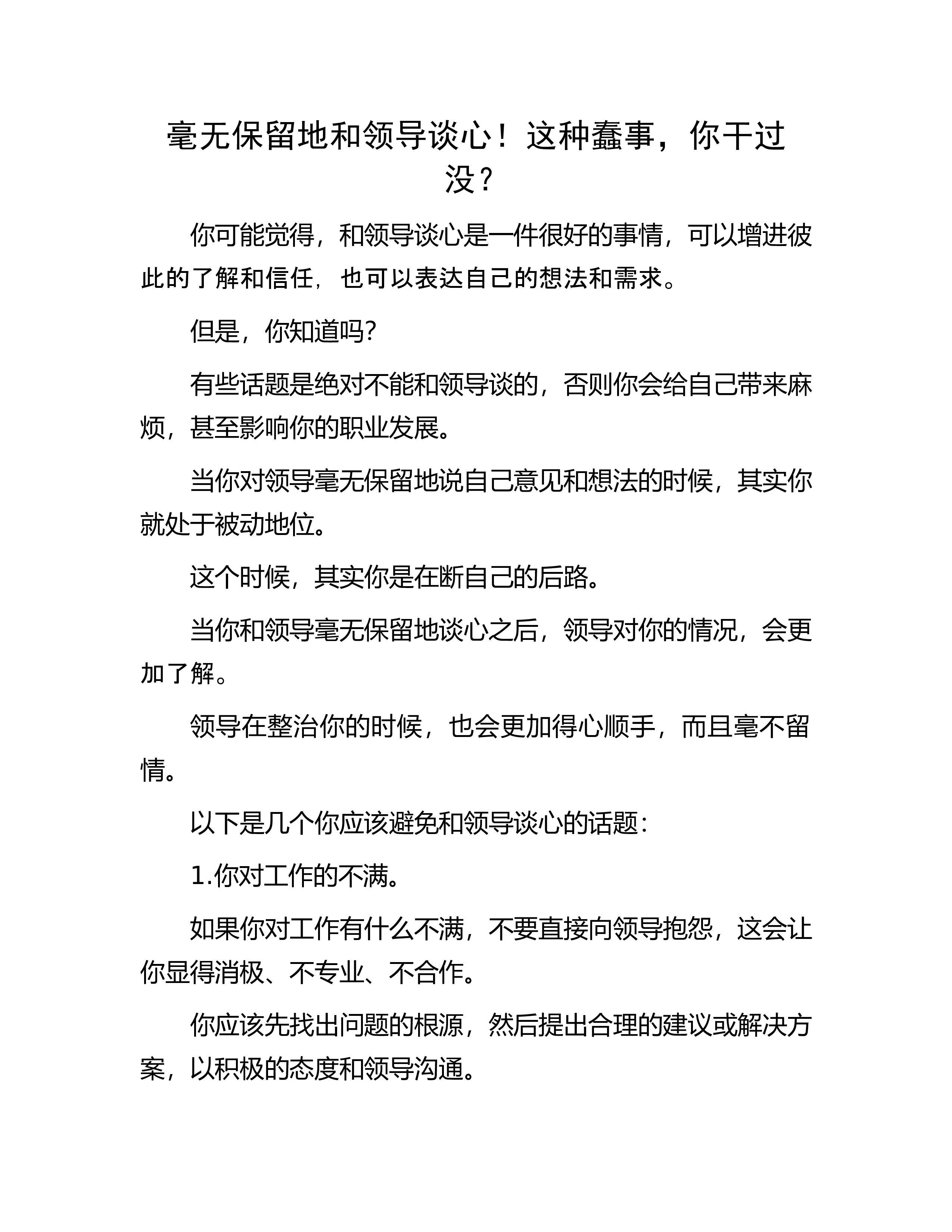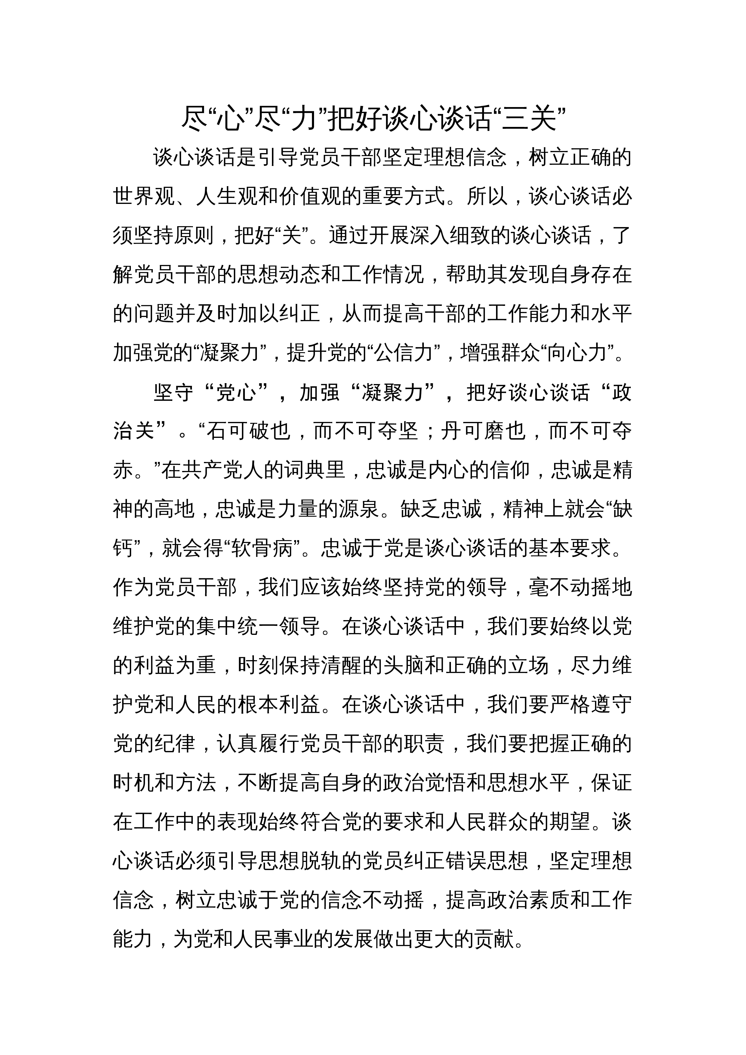 关于XX机关部门关于新员工谈心谈话记录集合(14篇)篇1 xx:根据党支部的安排,我们两个谈话心,交流对开展科学发展观的认识,开展批评和自我批评。怎么样?我们先谈谈吧? 朱光明:这次活动对我来说是非常罕见的学习和提高机会,给我的党内生活带来了良好的头脑。经过参加学习教育,真的觉得提高得很快,收获很大。这样系统地学习科学发展和三个代表的重要思想关系,科学发展和党的理论知识,过去从未有过。过去,我总觉得我的表现相当出色经过党性分析和调查,我真的找到了不足,看到了努力的方向。例如,成为学习型、知识型党员,提高创新意识,提高精神,提高标准,严格要求,立足岗位发挥模范领导作用等。差距还很大,真的不知...