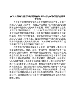 在“八八战略”指引下继续团结奋斗努力成为中国式现代化的城市范例今年是全面贯彻落实党的二十大精神的开局之年,是浙江实施“八八战略”20周年。党的二十大擘画了以中国式现代化全面推进中华民族伟大复兴的宏伟蓝图,开启了全面建设社会主义现代化国家的新征程。“八八战略”是习近平总书记为浙江量身定制的发展总纲领总遵循,指引浙江和杭州发展取得了历史性成就、发生了历史性变革。深学笃行党的二十大精神,系统总结“八八战略”20年实践,我们深刻体会到中国式现代化是实现中华民族伟大复兴的光明大道,“八八战略”在省域层面立起了中国式现代化先行探索的“四梁八柱”。习近平总书记对杭州发展十分关怀、寄予厚望,要求杭州在全省发挥...