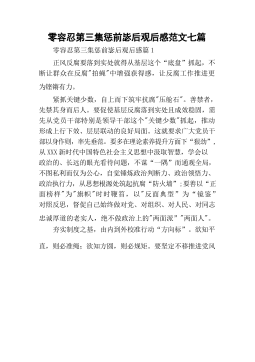零容忍第三集惩前毖后观后感范文七篇零容忍第三集惩前毖后观后感篇1正风反腐要落到实处就得从基层这个“底盘”抓起,不断让群众在反腐"拍蝇"中增强获得感,让反腐工作推进更为铿锵有力。紧抓关键少数,自上而下筑牢抗腐"压舱石"。善禁者,先禁其身而后人。要促使基层反腐落到实处且成效稳固,需先从党员干部特别是领导干部这个"关键少数"抓起,推动形成上行下效、层层联动的良好局面。这就要求广大党员干部以身作则,率先垂范。要多在理论素养提升方面下“狠劲”,从XXX新时代中国特色社会主义思想中汲取智慧,学会以政治的、长远的眼光看待问题,不谋“一隅”而通观全局,不图私利而仅为公心,自觉锤炼政治判断力、政治领悟力、政治执...