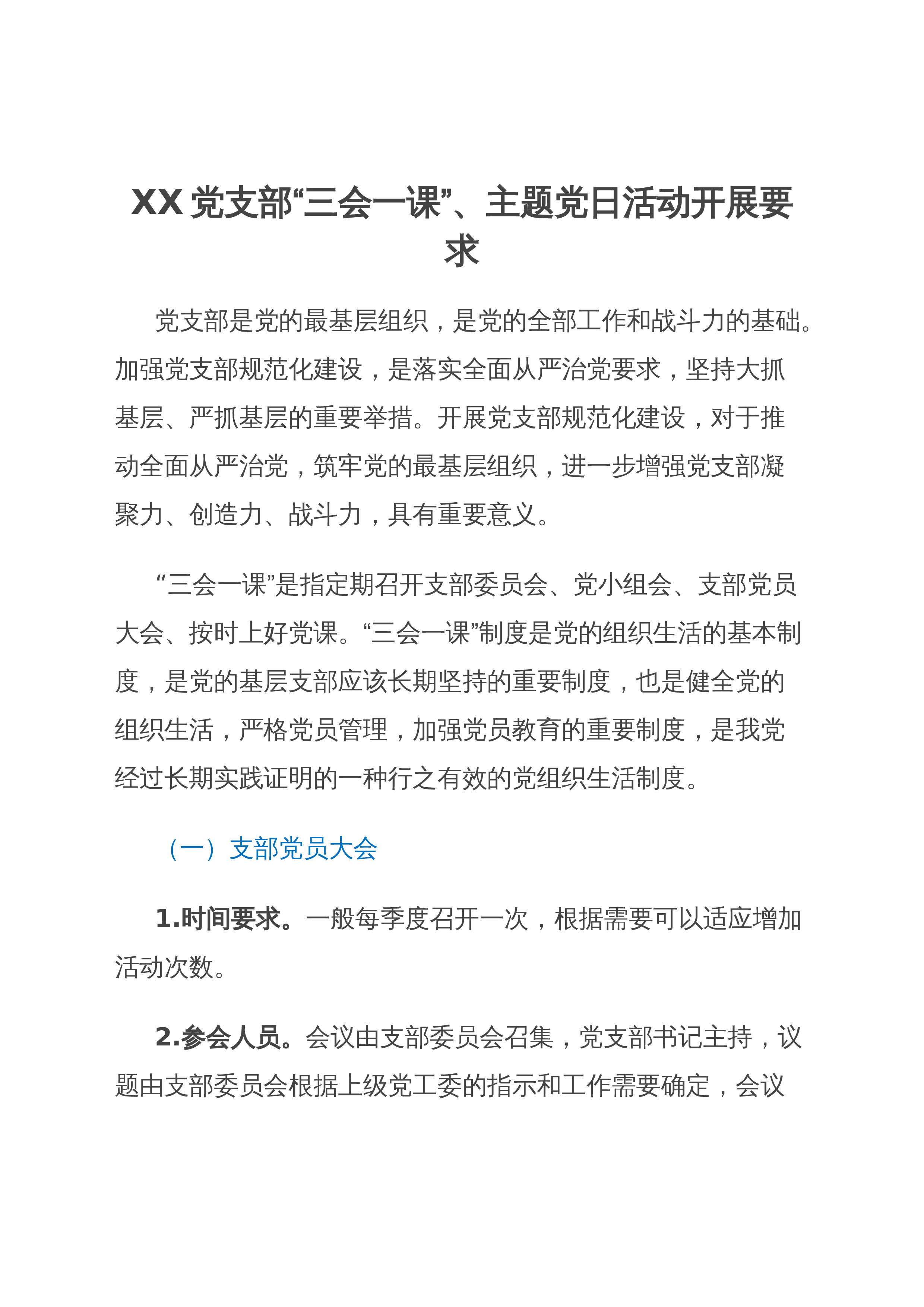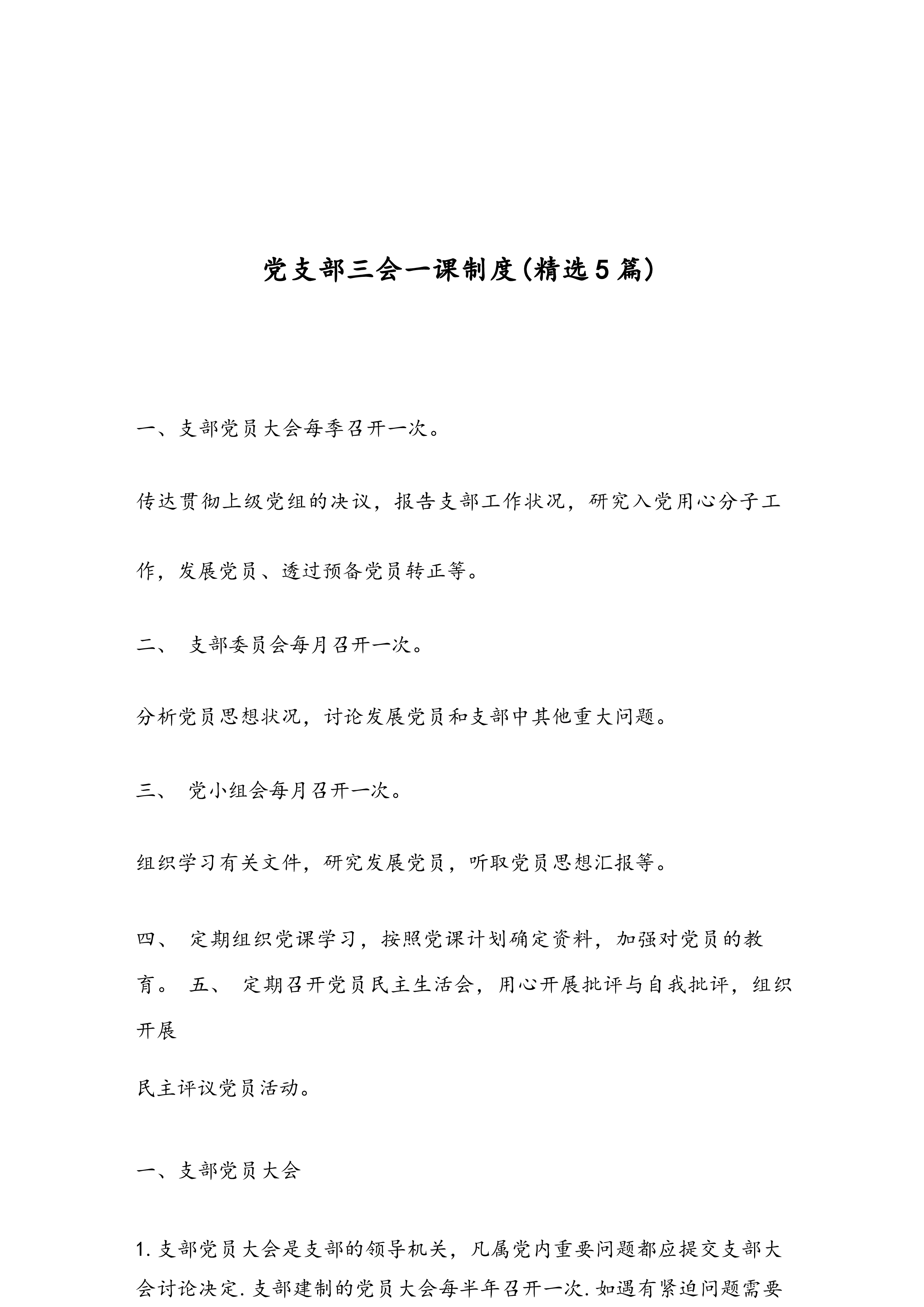 认真落实三会一课制度各位同志,你们好!我今天主要讲的内容是认真落实三会一课制度的学习。对三会一课这个词相信大家都不陌生,我们每名党员都要按时按要求参加三会一课。在新的历史条件下,加强党的自身建设,仍须重视和坚持这一行之有效的制度。认真坚持“三会一课”制度,对于加强党支部建设,提高基层党组织的战斗力具有重要作用党支部通过坚持“三会一课”制度,经常组织党员学习党的方针政策、时事政治和科学文化知识,不断提高党员的政治觉悟和工作水平,从而适应新形势,更好地完成党的各项工作任务。坚持“三会一课”制度,可以使党员对党的工作中的一些重大问题,在党的会议上进行民主讨论,按照民主集中制的原则,统一思想,做出决议...