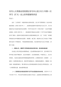 在市人大常委会党组理论学习中心组2021年第一次学习(扩大)会上的专题辅导讲话