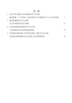 目录1.中共中华全国总工会党组理论学习中心组:深刻把握“十个坚持”历史经验奋力开创新时代工会工作新局面12.闽侯县委理论学习中心组:全力打造新时代滨江新城93.天津市国资委党委理论学习中心组:开创国资国企高质量发展新局面134.中共忻州市委党校(忻州行政学院)理论学习中心组:凝心聚力推进新时代全市党校工作高质量发展16深刻把握“十个坚持”历史经验奋力开创新时代工会工作新局面中共中华全国总工会党组理论学习中心组(2022年1月1日)党的十九届六中全会以宽广的历史视野和深厚的历史智慧,全面总结了党领导人民进行伟大奋斗积累的宝贵历史经验,即“坚持党的领导,坚持人民至上,坚持理论创新,坚持独立自主,坚...