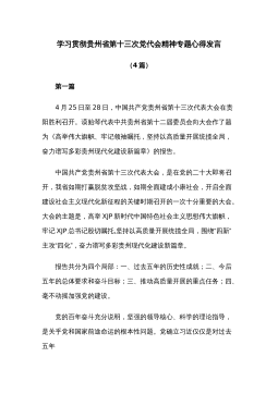 (4篇)学习贯彻贵州省第十三次党代会精神专题心得发言