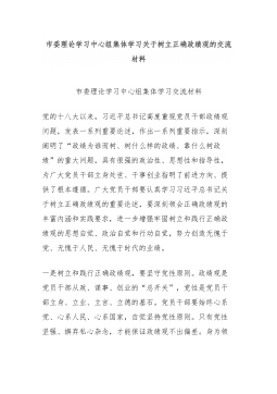 市委理论学习中心组集体学习关于树立正确政绩观的交流材料