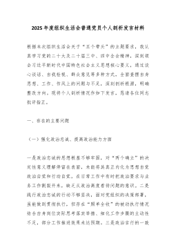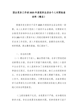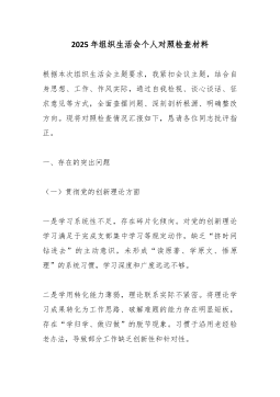XX银行XX党支部2025年度组织生活会班子对照检查材料根据XX党委关于召开2025年度基层党组织组织生活会的统一部署和要求,XX银行XX党支部班子紧扣会议主题,在深入开展学习研讨、广泛征求意见建议、普遍进行谈心谈话的基础上,重点对照“加强理论武装、执行上级组织决定、严格组织生活、加强党员管理监督、做好群众工作、抓好自身建设”等六个方面,紧密联系支部工作实际和班子成员思想作风状况,深入查摆存在的突出问题,深刻剖析问题产生的根源,并明确了今后的努力方向和整改措施。现将对照检查情况报告如下:一、存在的主要问题(一)在加强理论武装方面,思想引领的穿透力不强一是理论学习深悟不够。在组织党员学习习近平新时代中国特色社会主义思想和党的二十届四中全会精神时,系统性规划不强。2025年全年组织的12次“政治...