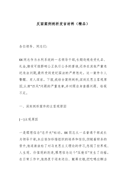 反面案例剖析发言材料(精品)各位领导、同志们:XX同志作为水利系统的一名领导干部,长期违规收受礼品、礼金,接受可能影响公正执行公务的宴请,还存在其他严重违纪违法问题,最终受到党纪国法的严肃惩处。这一案件令人警醒、发人深省。下面,我结合案例剖析,深刻反思主客观原因,认清"四风"问题的严重危害,并对照自身查摆问题、检视不足。一、深刻剖析案件的主客观原因(一)主观原因一是理想信念"总开关"松动。XX同志从一名普通干部成长为领导干部,本应倍加珍惜组织的培养和信任,但随着职务的晋升,他逐渐放松了对马克思主义理论的学习,忽视了世界观、人生观、价值观的改造,理想信念这个"压舱石"发生了动摇。在日常工作中,他热衷于迎来送往、觥筹交错,把吃喝应酬当作工作的一部分,把收受礼品礼金视为"人情往来",政治意识、宗旨...