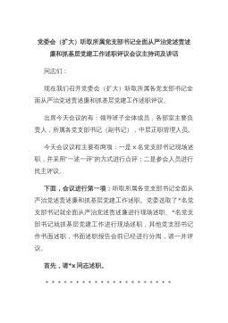 党委会(扩大)听取所属党支部书记全面从严治党述责述廉和抓基层党建工作述职评议会议主持词及讲话
