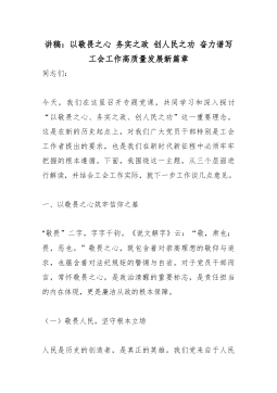 讲稿:以敬畏之心 务实之政 创人民之功 奋力谱写工会工作高质量发展新篇章