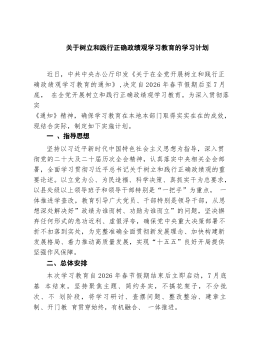 关于树立和践行正确政绩观学习教育的学习计划近日,中共中央办公厅印发《关于在全党开展树立和践行正确政绩观学习教育的通知》,决定自2026年春节假期后至7月底,在全党开展树立和践行正确政绩观学习教育。为深入贯彻落实《通知》精神,确保学习教育在本地本部门取得实实在在的成效,现结合实际,制定如下实施计划。一、指导思想坚持以习近平新时代中国特色社会主义思想为指导,深入贯彻党的二十大及二十届历次全会精神,认真落实中央相关全会部署,全面学习贯彻习近平总书记关于树立和践行正确政绩观的重要论述。以立党为公、为民造福、科学决策、真抓实干为总要求,以县处级以上领导班子和领导干部特别是“一把手”为重点,一体推进学查改,教育引导广大党员、干部特别是领导干部,从思想深处解决好”政绩为谁而树、功勋为谁而立”的问题,坚决摒...